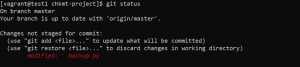 - With the git status command, we can see that the backup.py file has been added to the staging area while the script.py file is still untracked. To add it use the same command. To add all the files in a directory to the staging area at once use the following command.