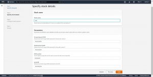 Then in step-2 give a name to your stack and also you change the default values of the parameters that you declared in the configuration template.