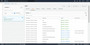 In step-3 you can give tags and the IAM role that should be used by CF to create your stack and in Step-4 Review all the details and click on Create Stack , this will redirect you to events page where you can see the progress of the deployment.