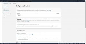 and for Stack failure options select Roll back all stack resources which means that you are instructing cloud formation to roll back all the resources created in case if it fails to create any one the resources that you have declared in the templet / yaml file and the other option is Preserve successfully provisioned resources , this option will keep the resources that are created successfully even if fails to deploy whole stack .