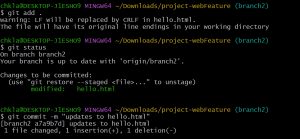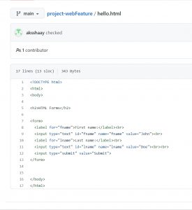 Here I cloned “project-webFeature ” repository to my computer and it has a html file named hello.html with content as shown below.