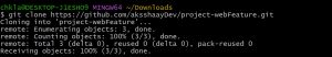 To clone a repository, use command “git clone” with the url of the repo.