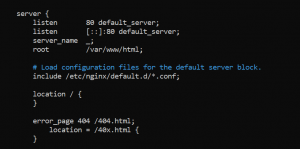 - In the root directive, specify the location of your HTML file. The default location is where Nginx webpage html file is present. The default listening port is 80 which can be changed according to the use case.