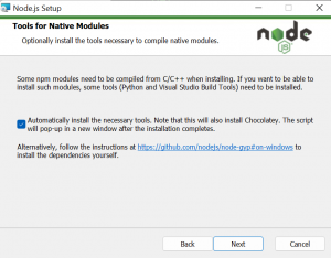 • Allow to automatically install necessary tools and select Next.