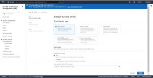 Select “AWS” service for “Select type of trusted entity” , EC2 for “Choose a use case” then click on next.