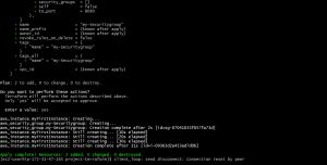 #Create security group with firewall rules resource "aws_security_group" "securitygroup-1" { name = var.security_group description = "security group for instance" #inbound ingress { from_port = 8080 to_port = 8080 protocol = "tcp" cidr_blocks = ["0.0.0.0/0"] } ingress { from_port = 22 to_port = 22 protocol = "tcp" cidr_blocks = ["0.0.0.0/0"] } # outbound egress { from_port = 0 to_port = 65535 protocol = "tcp" cidr_blocks = ["0.0.0.0/0"] } tags= { Name = var.security_group } } #declaration to launch instance resource "aws_instance" "myFirstInstance" { ami = var.ami_id key_name = var.key_name instance_type = var.instance_type security_groups= [var.security_group] tags= { Name = var.tag_name } }