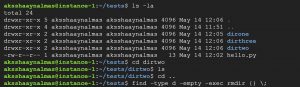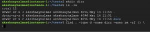 finding and deleting files and directories using “find” command and -exec.