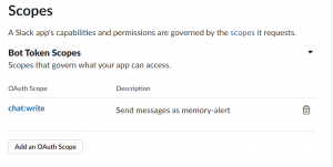 - Select chat:write scope.